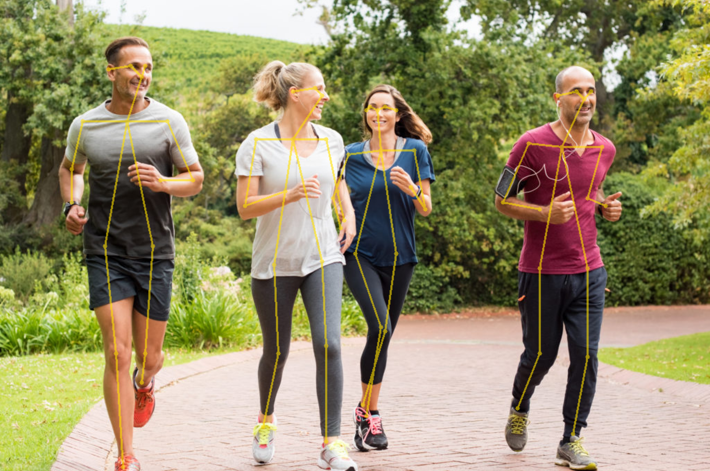 keypoint_names: Ordered list of 18 keypoint names for the human bodyjson_data: A dictionary containing theid,confidence,bbox(x1, y1, width, height),keypoints(list of all keypoints - [x, y] pairs) of each detected person.- Invisible / undetectable keypoints are returned as [-1, -1].