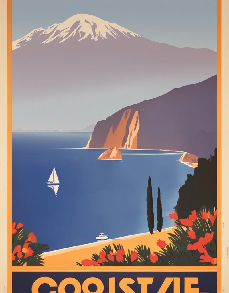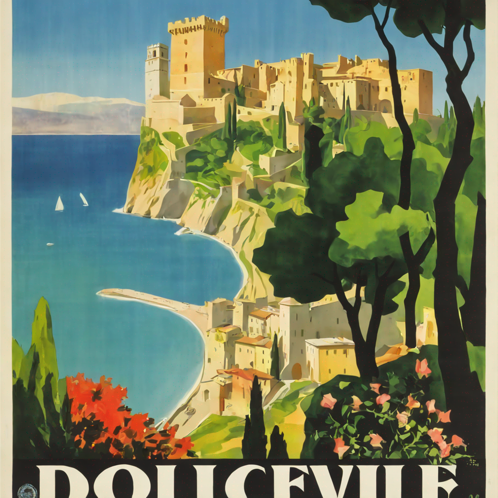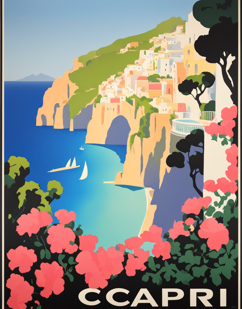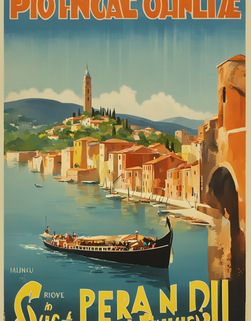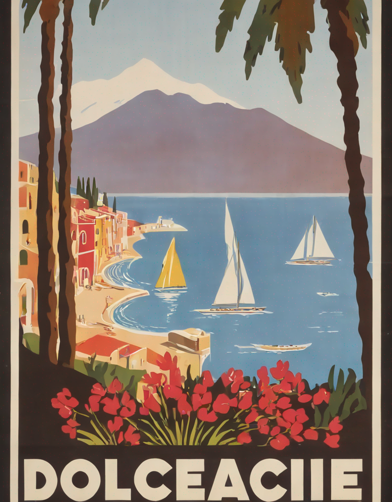 Use “a poster in the style of dolcevp” to trigger the model correctly. Words as “travel” or “advertising”, can improve the results as well.