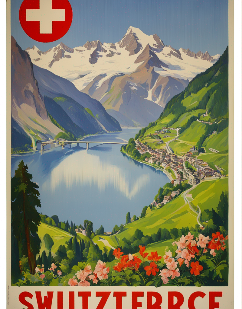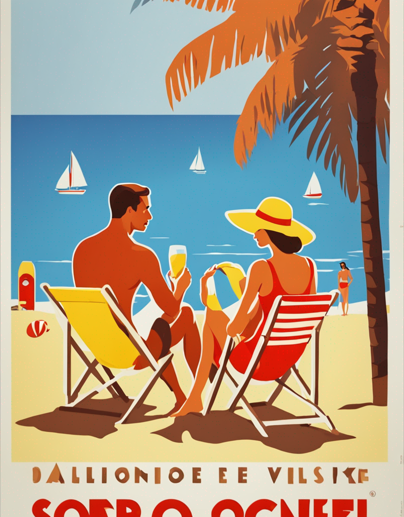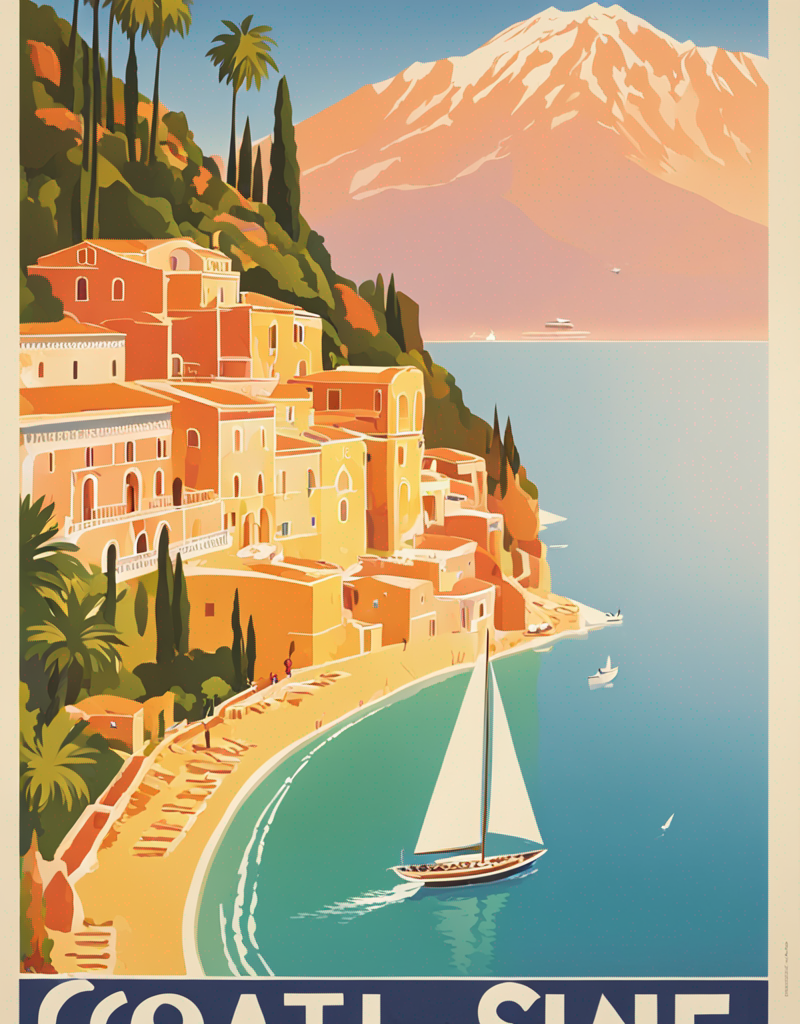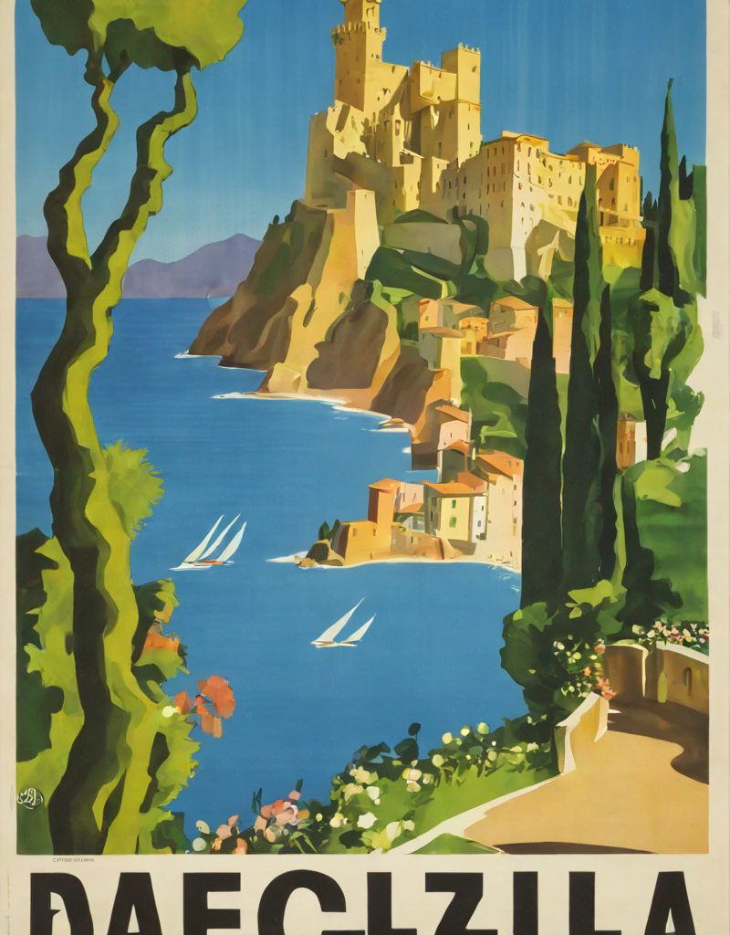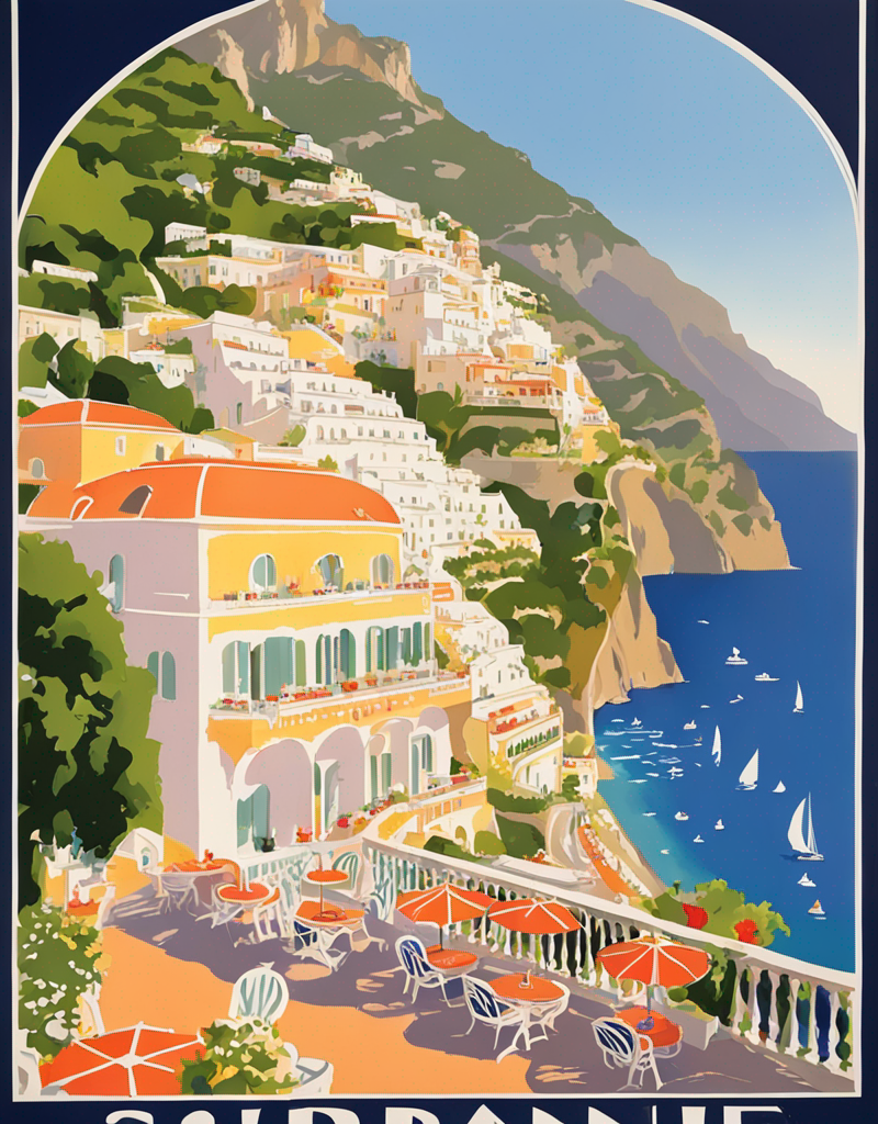 Use “a poster in the style of dolcevp” to trigger the model correctly. Words as “travel” or “advertising”, can improve the results as well.