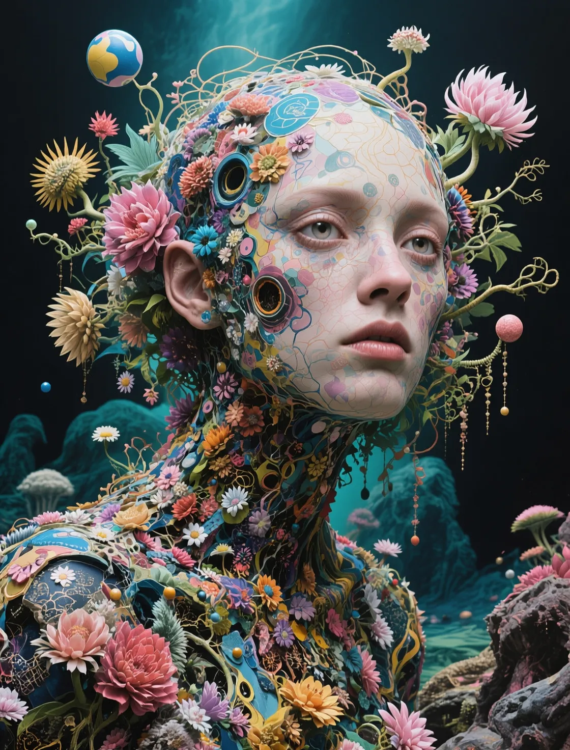 Qwen fine-tuned on trippy and vibrant FLUX Pro outputs