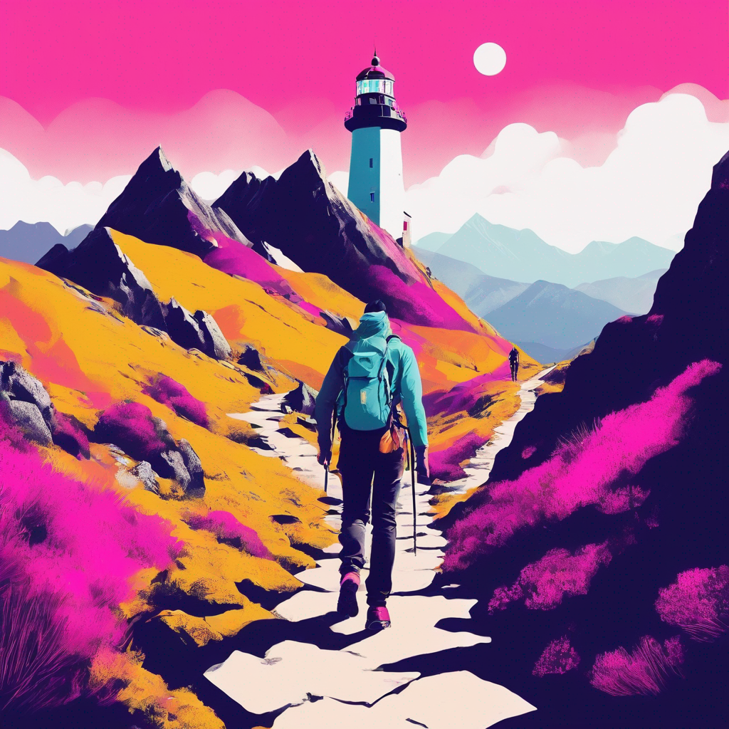 Use the following prompt structure: βIn the style of BetterUp, a captain sailing the ocean with a lighthouse in the background, with a vibrant, high contrast color palette, use rubine colors as a highlight.β