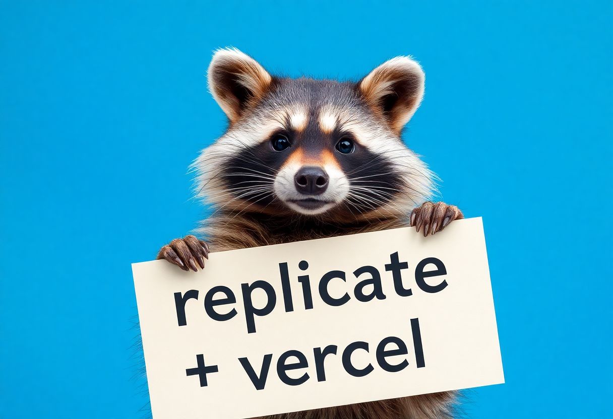 "prompt": "a raccoon holding up a sign that says \\"replicate + vercel\\""